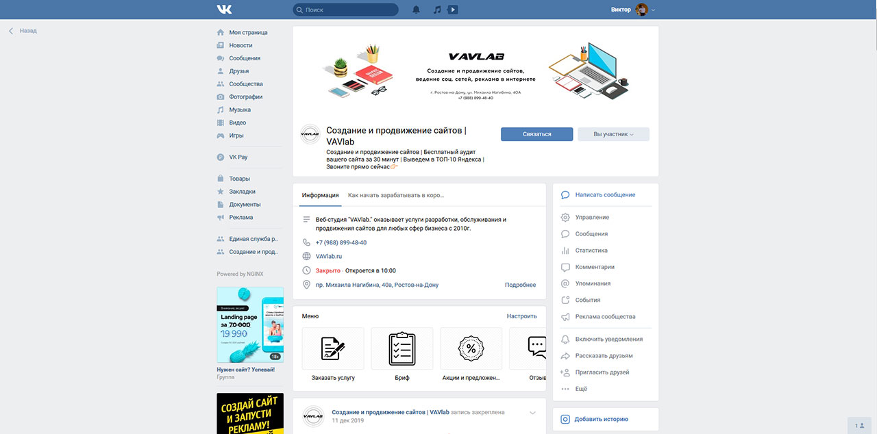 Разработка и ведение сообщества в социальной сети "Вконтакте"
